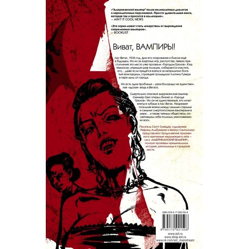 Оставить отзывПредставляем вашему вниманию комикс Американский вампир. Книга 2, рассказывающий о назревающей тотальной войне между самыми старыми и самыми смертоносными вампирами в мире.