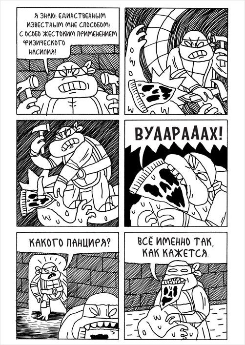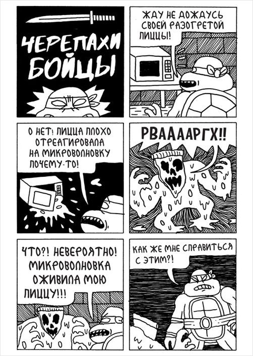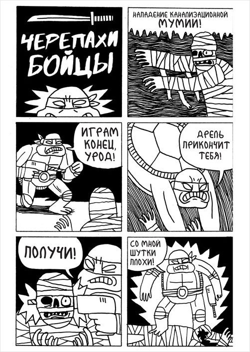 Комикс Черепахи-бойцы рассказывает об отвратительных человекоподобных рептилиях, которые живут в канализации и держат в страхе весь криминальный мир. Это... самые настоящие Черепахи Бойцы!