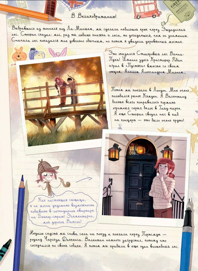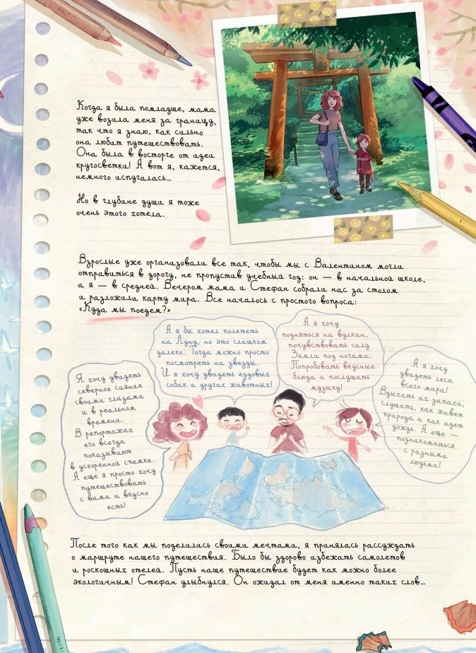 Вместе они объезжают Европу, Южную Америку и Африку, наблюдают за китами и северным сиянием, гуляют по марокканским улочкам и амазонскому лесу, обретают новых удивительных знакомых и встречают старых друзей.