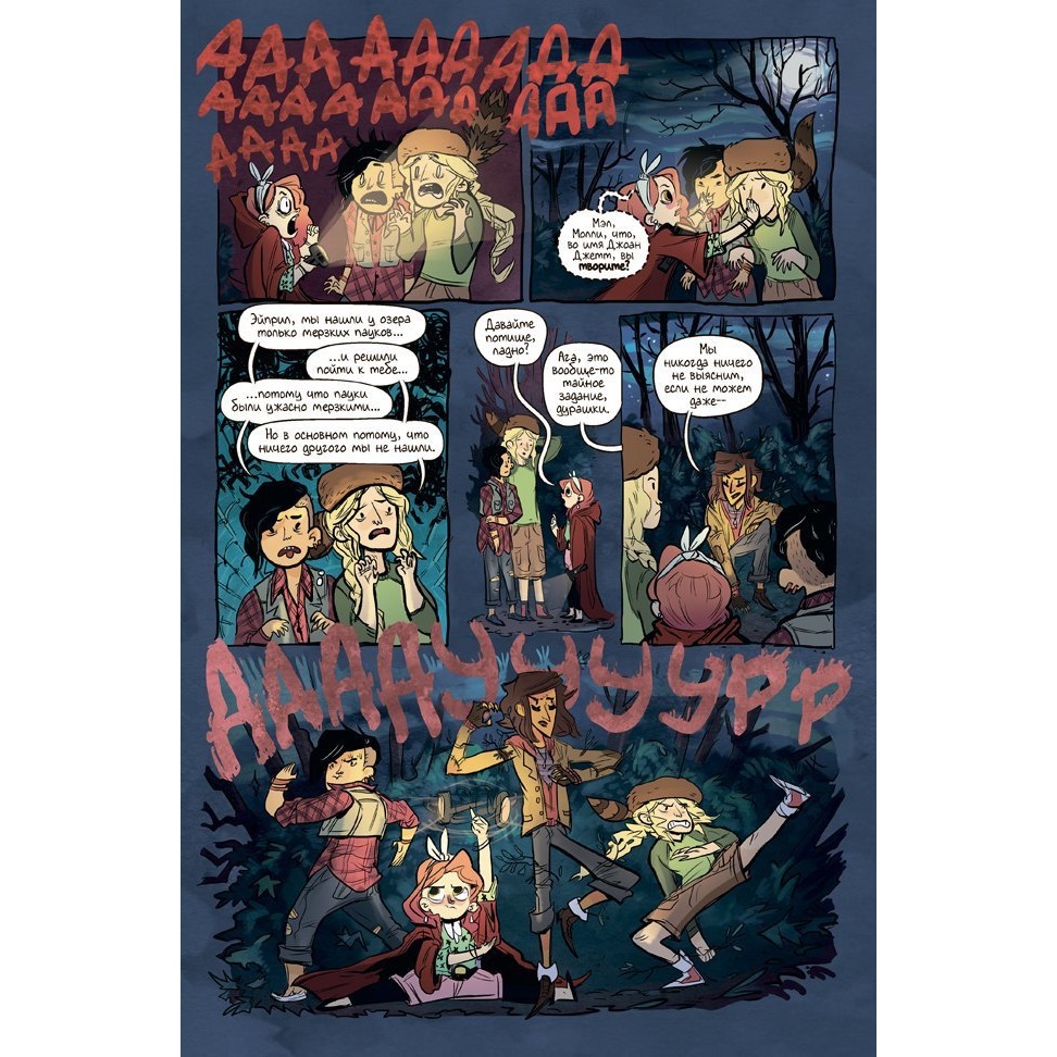 Стивенсон работает на том же поле, что и Хёрш с «Гравити Фолз» или Билл Уотерсон с «Кальвином и Хоббсом» – детским чувством того, что за фасадом повседневности скрывается фантастический мир, который ждёт своего исследователя. Только здесь этих исследователей пятеро – и они все девочки. Разные, но невероятно живые. Они бесконечно далеки от стереотипных образов, которыми ещё лет десять назад полнились комиксы.