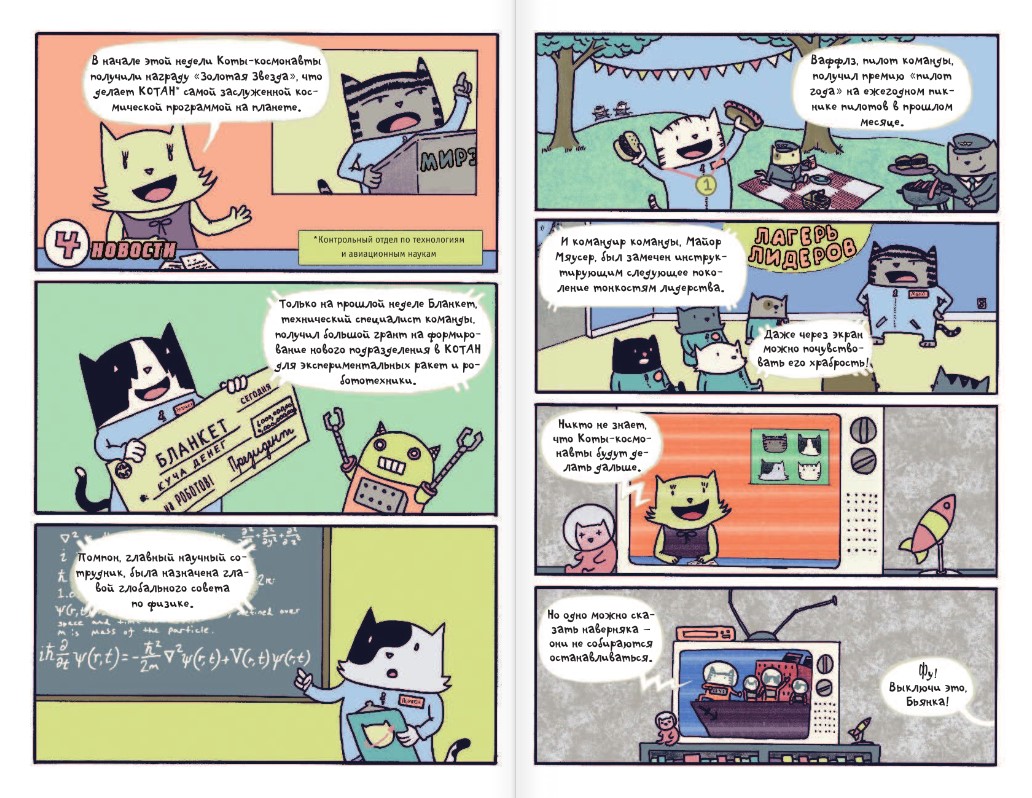 Во второй книге из серии комиксов «Коты-космонавты» наш героический отряд примет участие в космической гонке века!