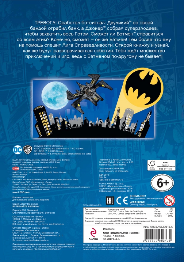 Тревога! Сработал бэт-сигнал: Двуликий со своей бандой ограбил банк, а Джокер собрал суперзлодеев, чтобы захватить весь Готэм. Сможет ли Бэтмен справиться со всем этим? Конечно, сможет – он же Бэтмен! Тем более что ему на помощь спешит Лига Справедливости. Открой книжку и узнай, как же будут разворачиваться события. Тебя ждёт множество приключений и игр, ведь с Бэтменом по-другому не бывает!