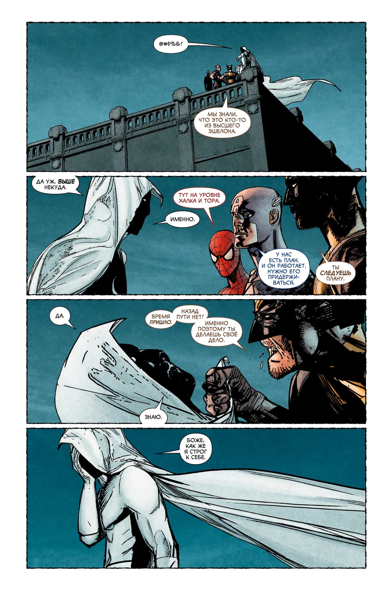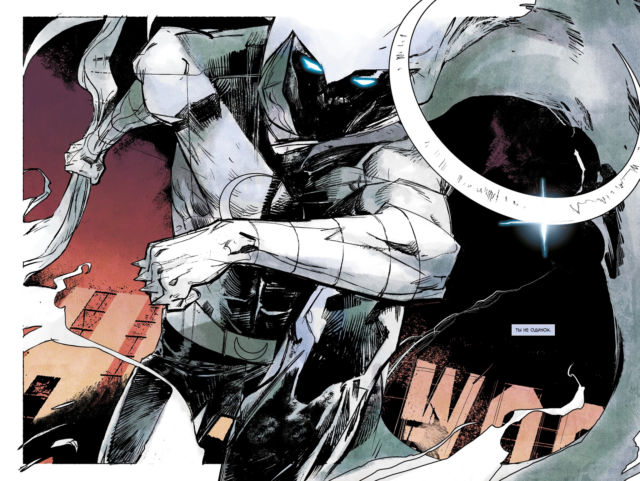 Едва ли можно найти союзников лучше Капитана Америка, Росомахи и Человека-Паука. Вот только беда в том, что все они находятся лишь в голове Марка, – его многострадальное сознание в очередной раз расщепилось на новые осколки! И пока Спектор пытается сопротивляться собственному разуму и старается обосноваться в новом доме в ЛосАнджелесе, могущественный криминальный авторитет вершит свои злые козни, выставляя на чёрный рынок тело поверженного (но всё ещё смертоносного) робота Альтрона! Сможет ли Лунный Рыцарь справиться с расстройством личности и вовремя взять себя в руки, чтобы противостоять этой угрозе? Или же он пытается прыгнуть выше своей головы? Брайан Майкл Бендис и Алекс Малеев воссоединяются после прославившего их дуэт Сорвиголовы, чтобы представить вам уникальный взгляд на любимого виджиланте вселенной Marvel!