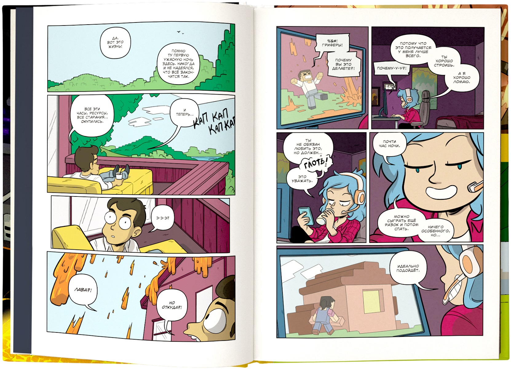 Перед вами сборник ярких историй, собранных из блоков и панелей! Вас ждёт захватывающее путешествие по Верхнему миру, в котором вы встретите ведьму и разбойника, которые пытаются найти общий язык, коварного грифера, переоценившего собственные возможности, отважных искателей приключений, которые только начали знакомство (или нет!) с Верхним миром, и милую хрюшку, которая мешает герою построить собственную империю.