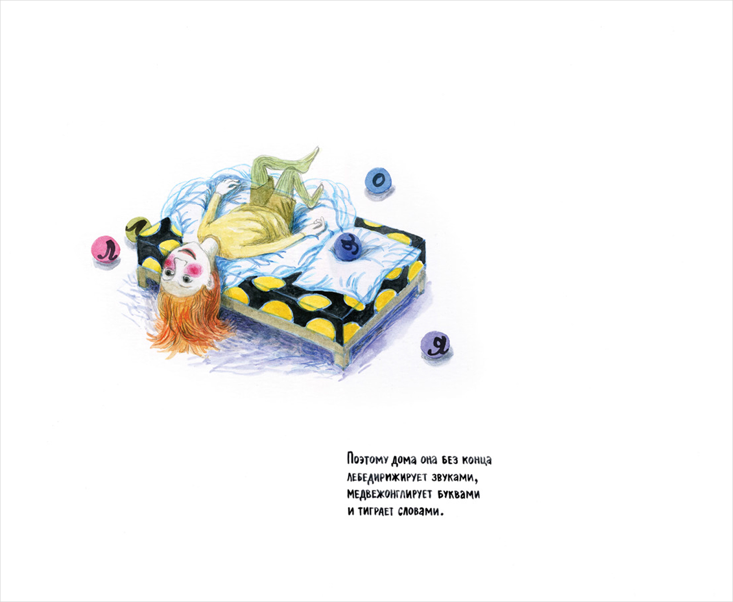 Мона Оляля живет в городе, где буквы на каждом шагу. Она обожает набивать ими карманы. Дома Мона без конца лебедирижирует звуками, медвежонглирует буквами и тиграет словами. А родители Моны очень заняты, им не нравятся разбросанные повсюду буквы. Потеряв терпение, папа Моны достает пылесос…