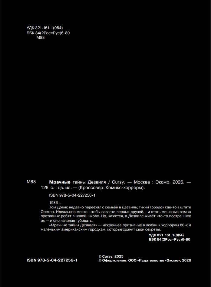 Оставить отзыв1986 г. Том Дэвис недавно переехал с семьёй в Дезвиль, тихий городок где-то в штате Орегон. Идеальное место, чтобы завести верных друзей... и стать мишенью самых противных ребят в новой школе. Но, кажется, в Дезвиле живёт что-то пострашнее них – и оно начинает убивать.