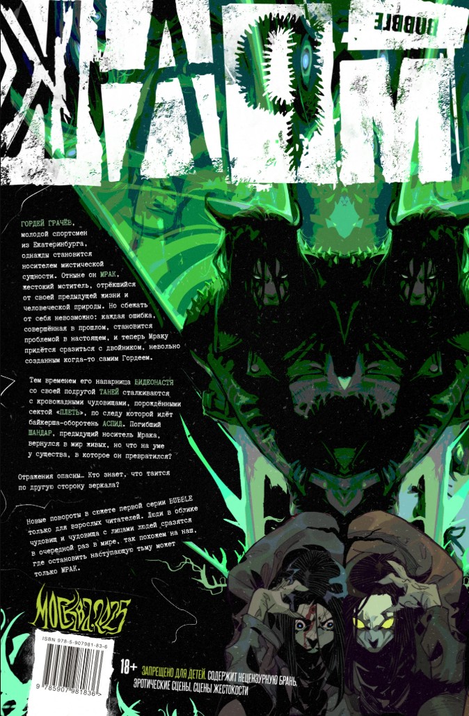 Оставить отзывГордей Грачёв, молодой спортсмен из Екатеринбурга, однажды становится носителем мистической сущности. Отныне он Мрак, жестокий мститель, отрёкшийся от своей предыдущей жизни и человеческой природы. Но сбежать от себя невозможно: каждая ошибка, совершённая в прошлом, становится проблемой в настоящем, и теперь Мраку придётся сразиться с двойником, невольно созданным когда-то самим Гордеем.