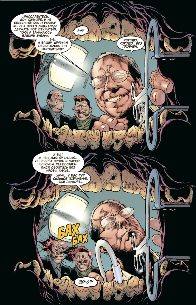 Никто не пишет «Карателя» лучше, чем Гарт Эннис – и эти жестокие сюжеты тому подтверждение. Бывший морпех Фрэнк Касл стал свидетелем смерти жены и детей во время мафиозных разборок и после этого объявил войну преступности. Но зачем тогда он спасает дона мафии из лап обозлённых повстанцев в Южной Америке?