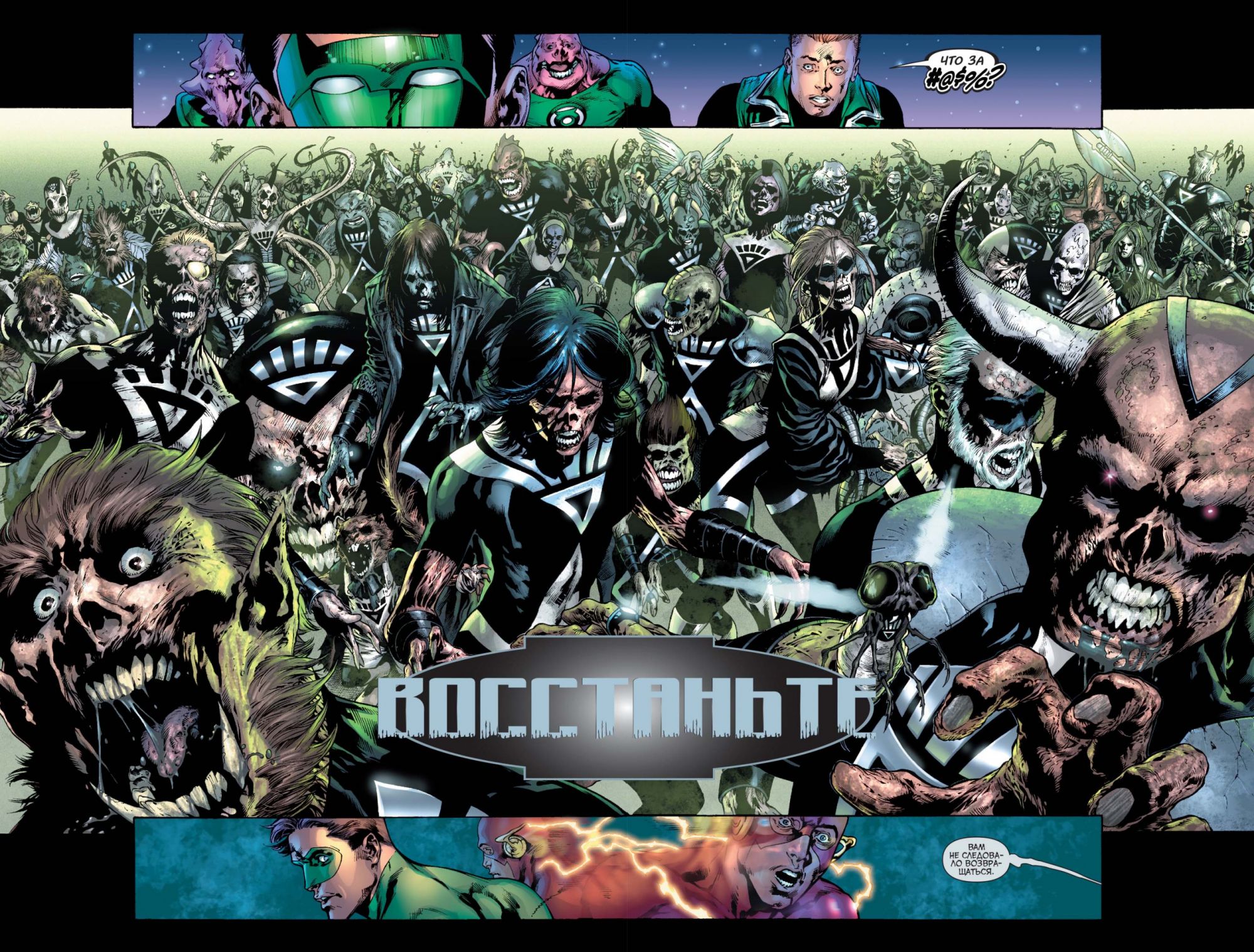 Пророчество сбылось, и враги стали друзьями, а те, кто сражался плечом к плечу, оказались лицом к лицу – как враги. Конфликтам Фонарей разных Корпусов пришел конец: если они не объединятся перед лицом общей угрозы, всех их ждет полное уничтожение. С небес в громовых раскатах спускаются Черные Фонари, и меркнет свет. Падают замертво герои и злодеи, одинаково бессильные противостоять мощи тьмы. Лишаются силы Фонари, носящие кольца разных цветов спектра.