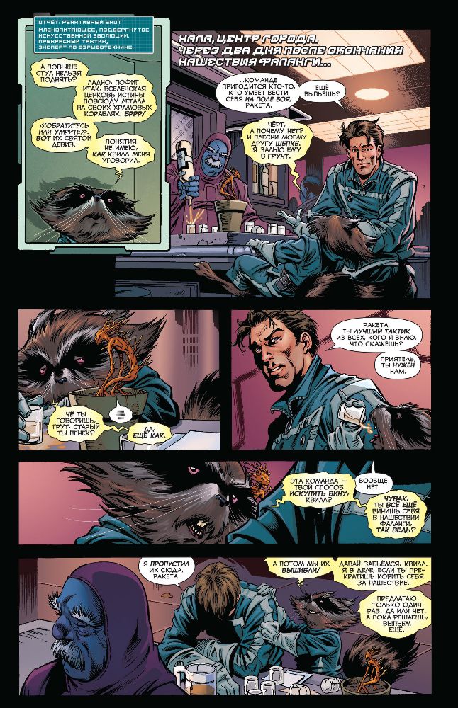 В книгу входят комиксы Guardians of the Galaxy (2008) #1-12 и дополнительные материалы. 296 страниц, прошитый мягкий переплет.