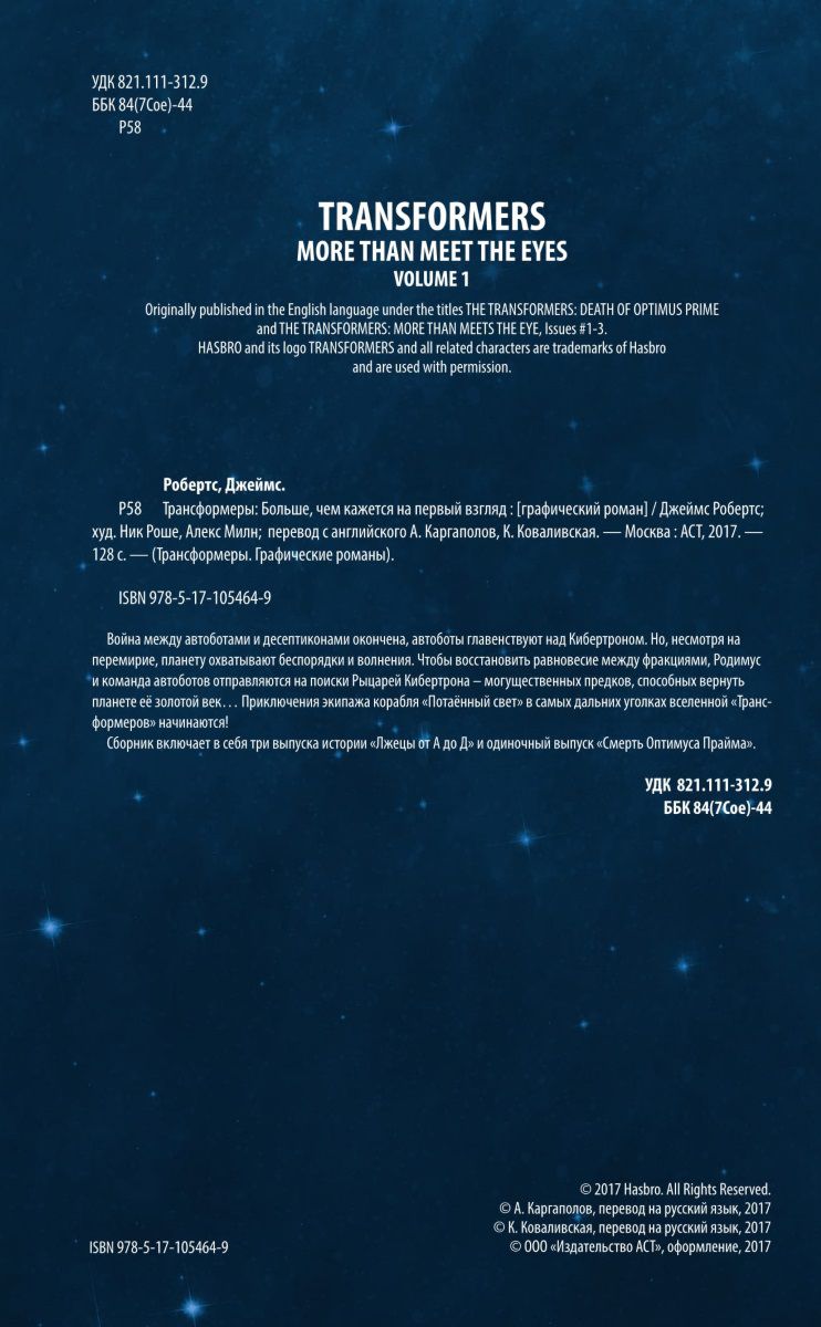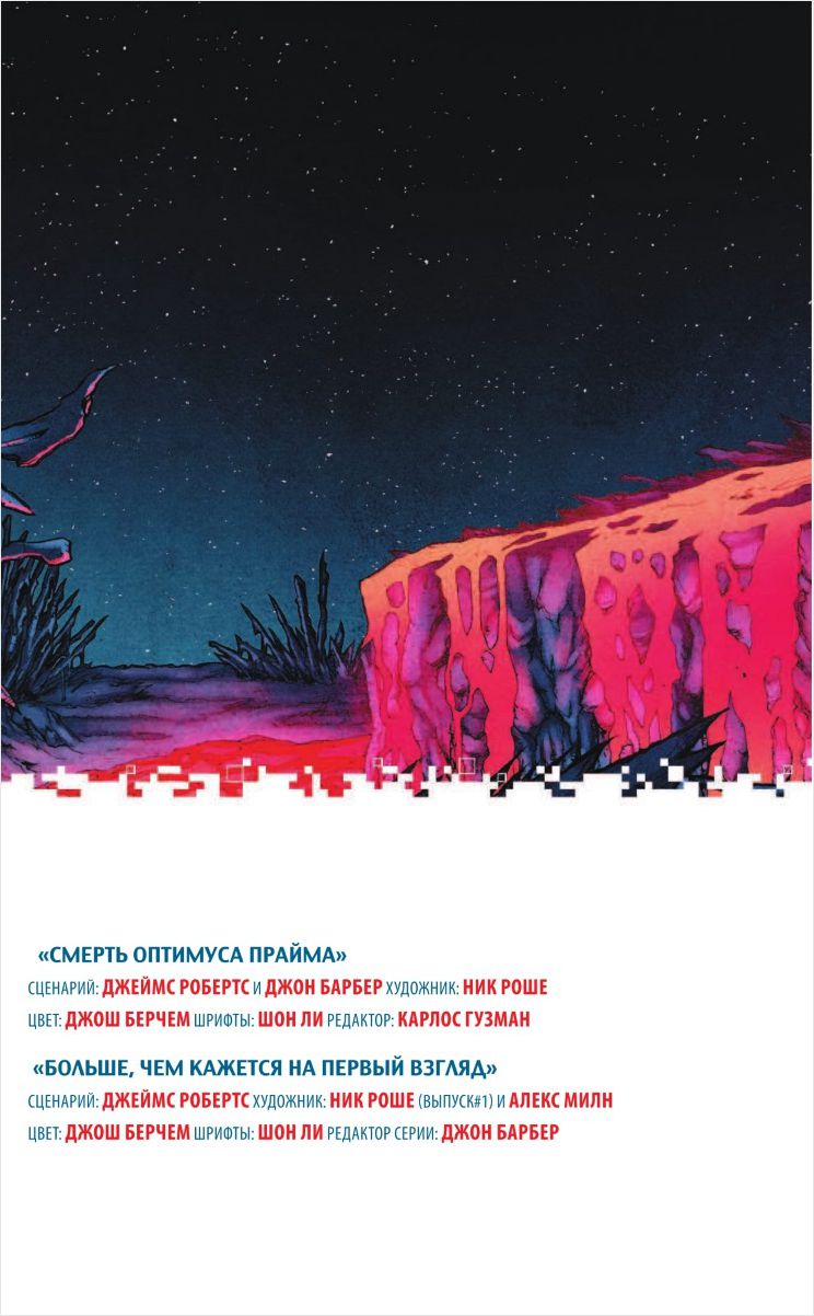 Оставить отзывСборник комиксов Трансформеры: Больше, чем кажется на первый взгляд включает в себя три выпуска истории «Лжецы от А до Д» и одиночный выпуск «Смерть Оптимуса Прайма».