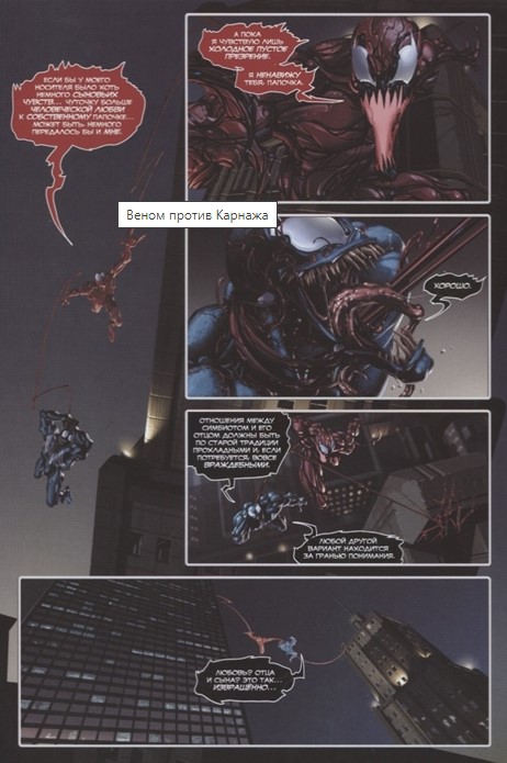Включает выпуски: «Веном против Карнажа» #1-4 от автора Питера Миллигана («X Statix)» и художника Клейтона Крейна («Карнаж С.Ш.А.»)