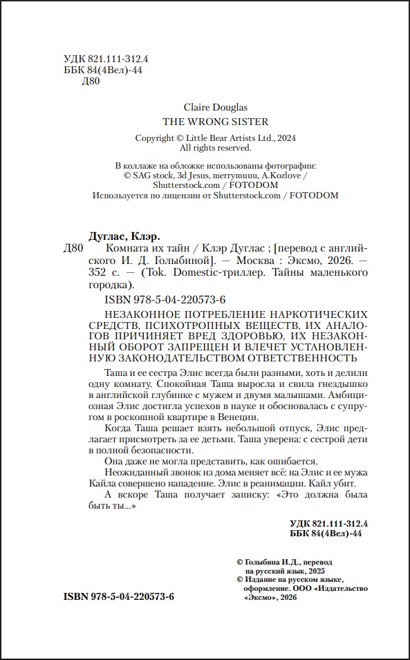 Таша и её сестра Элис всегда были разными, хоть и делили одну комнату. Спокойная Таша выросла и свила гнездышко в английской глубинке с мужем и двумя малышами. Амбициозная Элис достигла успехов в науке и обосновалась с супругом в роскошной квартире в Венеции.