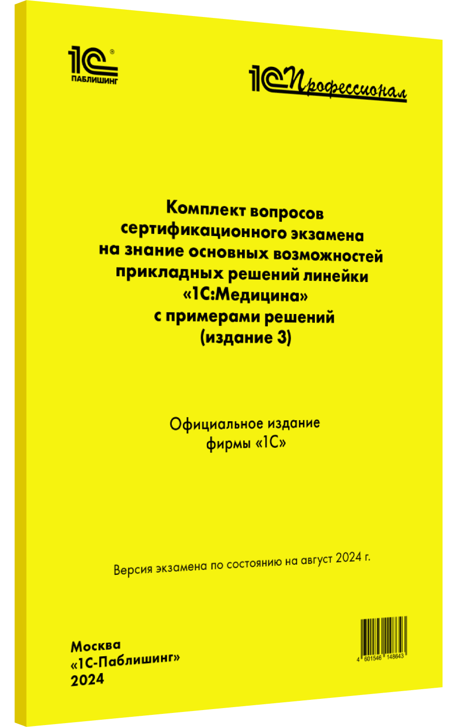 Компл.вопр.серт.экзам.на знание основных возможностей прикладных решений линейки «1С:Медицина» (изд.3), август 2024 г.