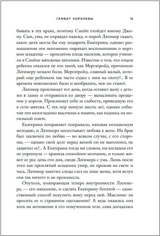 «Гамбит королевы» – первая книга цикла Элизабет Фримантл о выдающихся женщинах английской истории. Она повествует о Екатерине Парр, последней жене своенравного Генриха VIII, о котором англичане придумали считалку, чтобы запомнить его жен: развелся, казнил, умерла, развелся, казнил, пережила. Король Англии Генрих VIII, успевший развестись с двумя женами, одну похоронить, а двух других казнить, ищет новую супругу. Он обращает внимание на недавно овдовевшую леди Латимер, Екатерину Парр. Но она влюбляется в неотразимого Томаса Сеймура, шурина короля. Тогда Генрих отсылает Сеймура прочь и женится на Екатерине. Теперь она должна положиться на свой ум, доверяя лишь верной служанке Дот. Впереди – придворные интриги, но Екатерина не намерена отказываться от любви.