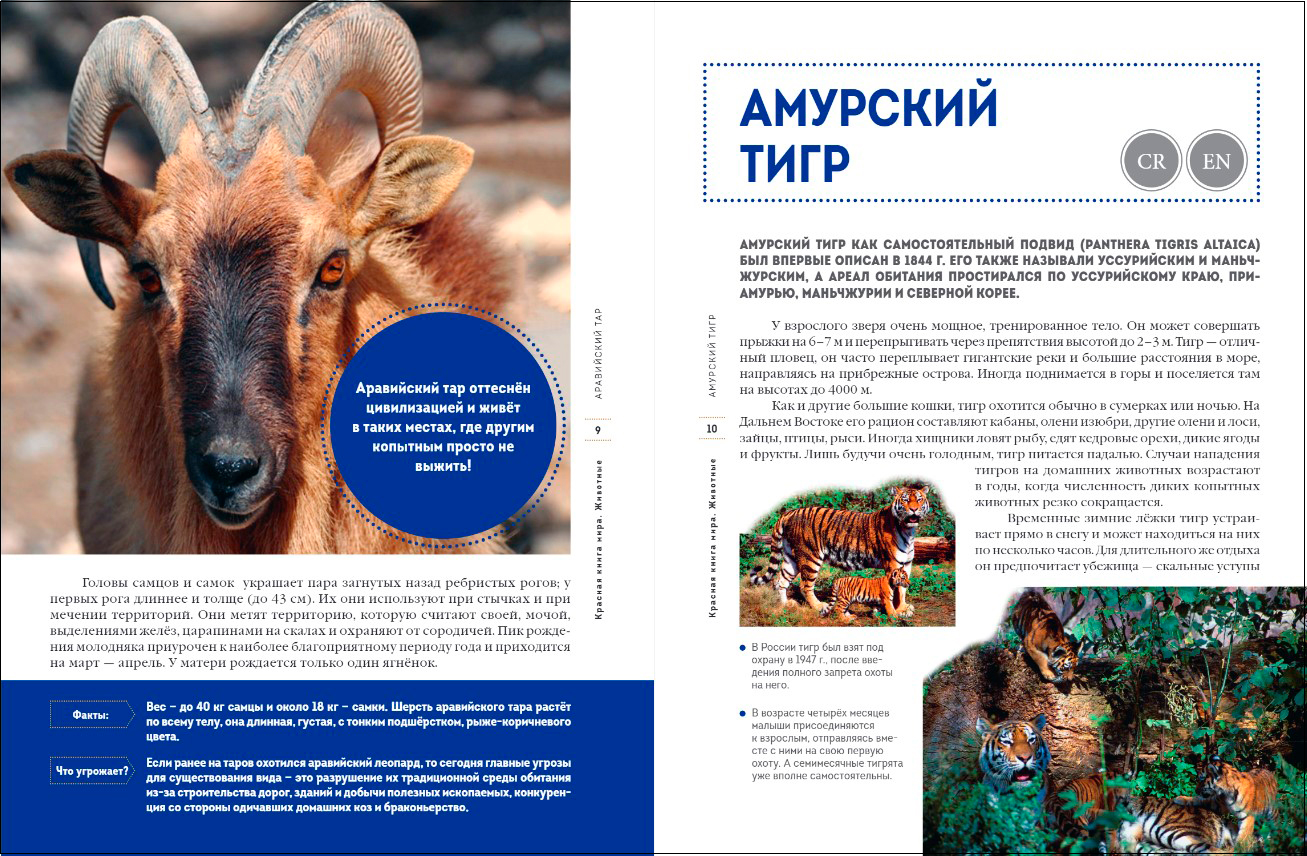 Оставить отзывМногие обитатели нашей планеты, которые находятся под угрозой исчезновения, нашли себе приют на страницах этой красочной энциклопедии. Красная книга не просто рассказывает о редких животных, но и предупреждает: они нуждаются в нашей защите и помощи! Прочитав её, дети и взрослые узнают много удивительных фактов из жизни исчезающих видов, а также о том, какую роль может сыграть человек в их сохранении. Большие и яркие авторские фотографии позволят разглядеть редких обитателей Земли во всей их красе и лучше сориентироваться в мире тех, кому особенно сильно необходима в наша забота.