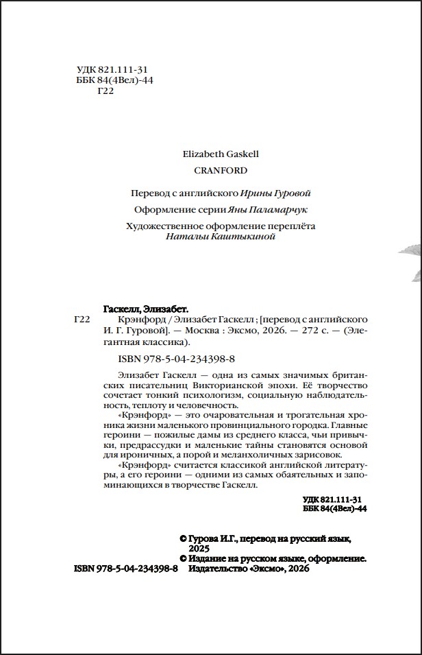 Оставить отзывЭлизабет Гаскелл – одна из самых значимых британских писательниц викторианской эпохи. Её творчество сочетает тонкий психологизм, социальную наблюдательность, теплоту и человечность.