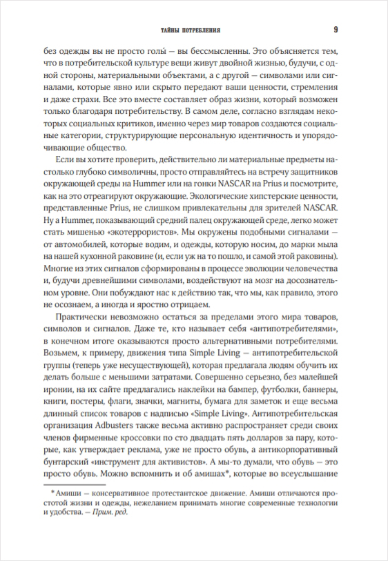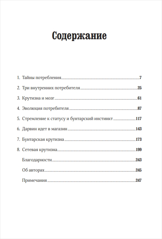 Авторы этой книги провели глобальное исследование, обобщили новейшие данные в области нейронауки, экономики, эволюционной биологии и выяснили, почему мы просто обречены покупать и почему стремимся выглядеть лучше остальных. По мнению авторов, невозможно остаться за пределами этого мира товаров, символов и сигналов. Даже те, кто называет себя «антипотребителями», в конечном итоге оказываются просто альтернативными потребителями.