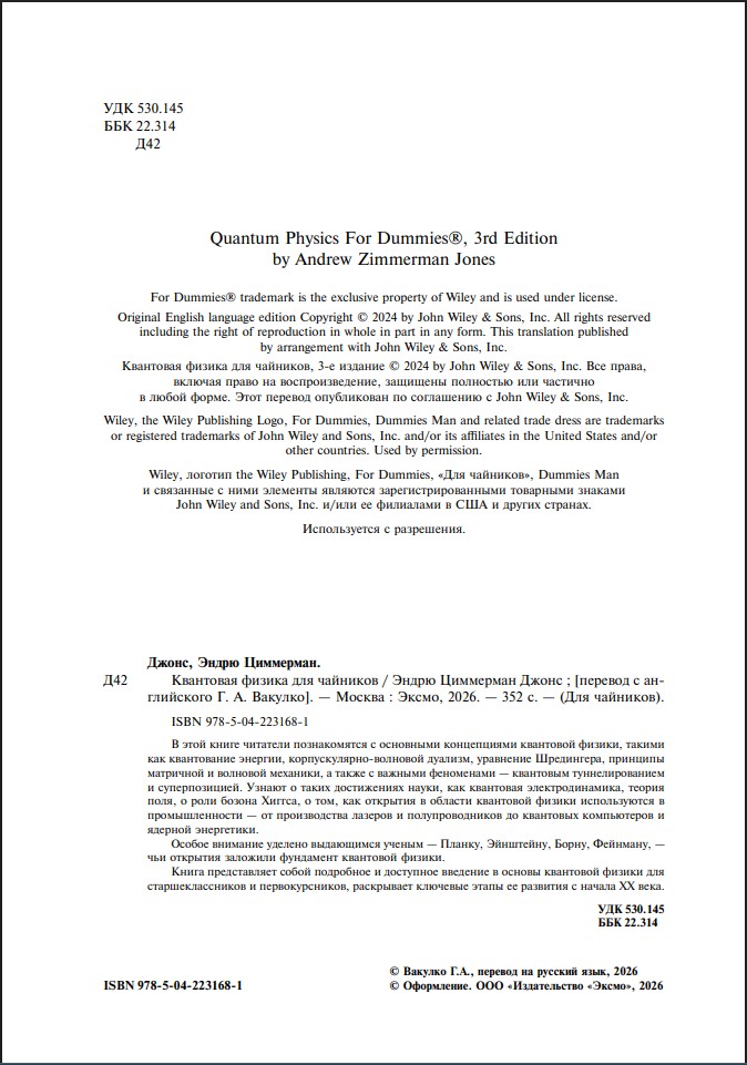 Доступное введение в квантовую физику для старшеклассников и первокурсников. Читатели познакомятся с фундаментальными понятиями – квантованием энергии, корпускулярно-волновым дуализмом, уравнением Шрёдингера, принципами матричной и волновой механики, а также ключевыми явлениями, такими как квантовое туннелирование и суперпозиция.