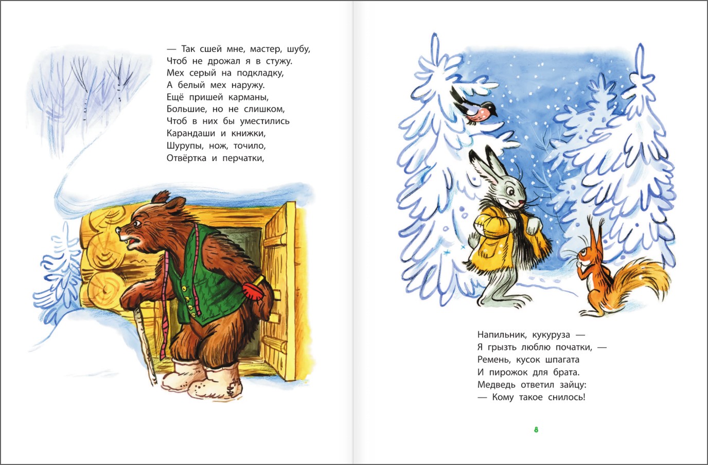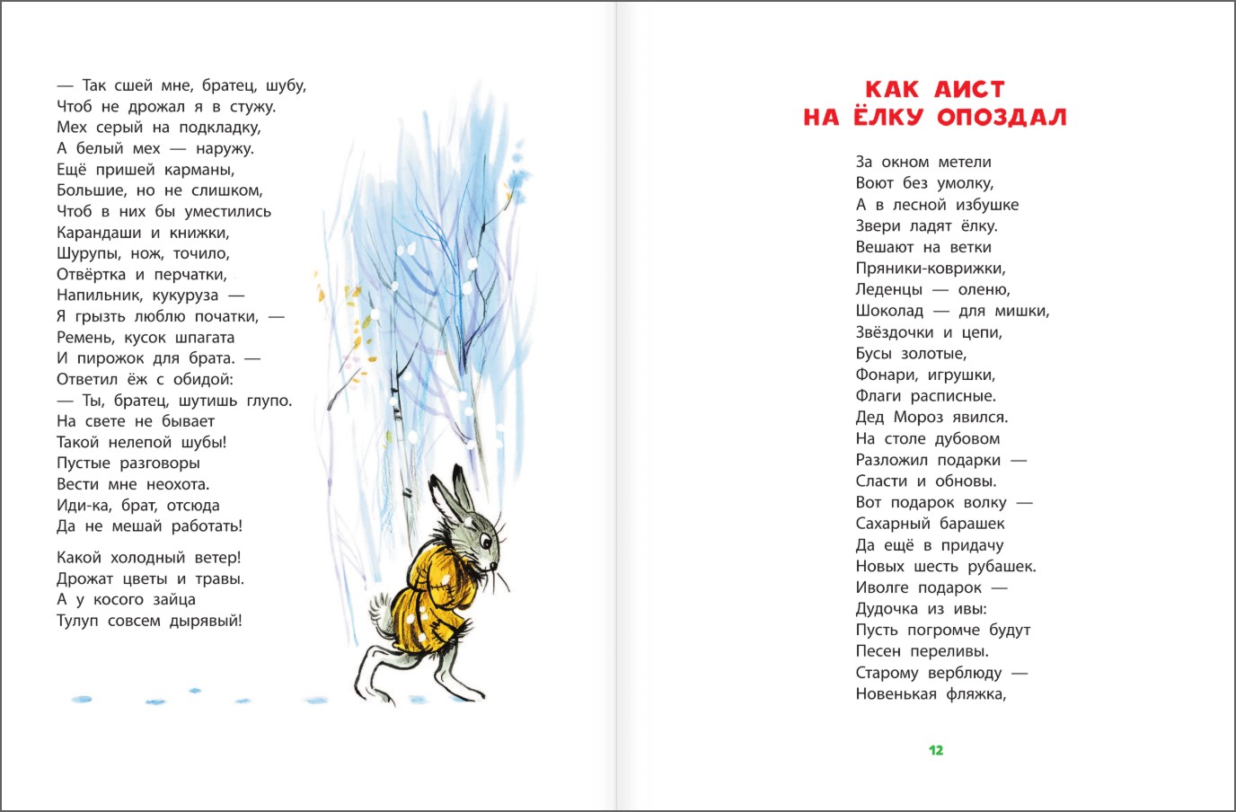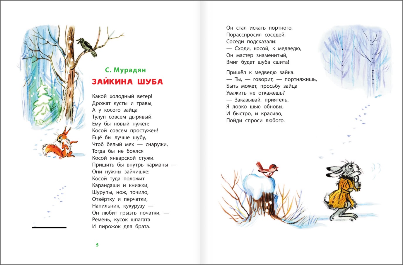 В книгу вошли редкие рисунки В. Сутеева к народной считалке «Напала лисица на заячий след...», басне Л. Н. Толстого «Белка и волк», стихам А. Барто «Зарядка» и В. Берестова «Мудрая наседка», В. Осеевой «Сосчитай-ка».