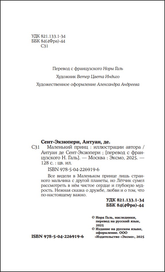 Любимый всеми классический перевод Норы Галь – живой, ясный и поэтичный – подарит знакомство с Маленьким принцем, таким, каким его задумал автор.