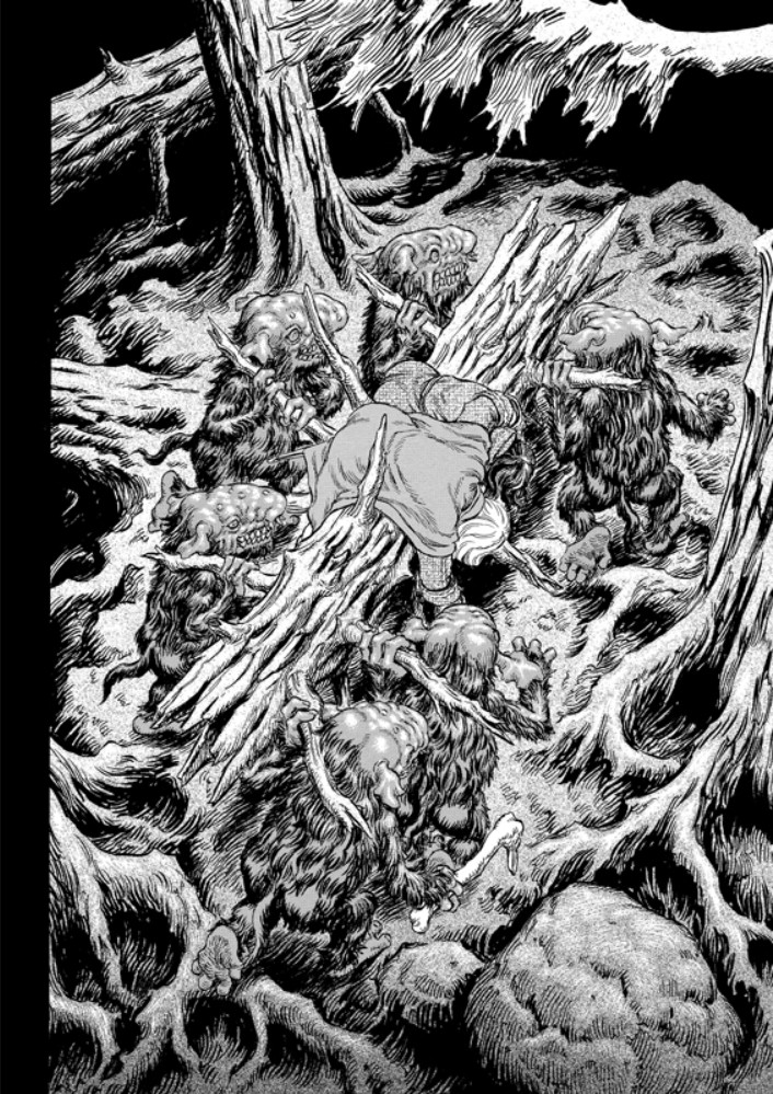 Дорога ведет через горный перевал, где разбойничают тролли, и вскоре судьба приводит Гатса и остальных к ведьме Флоре. Та просит спасти деревню Енох от разорения, и к Гатсу присоединяется юная ведьма Ширке.