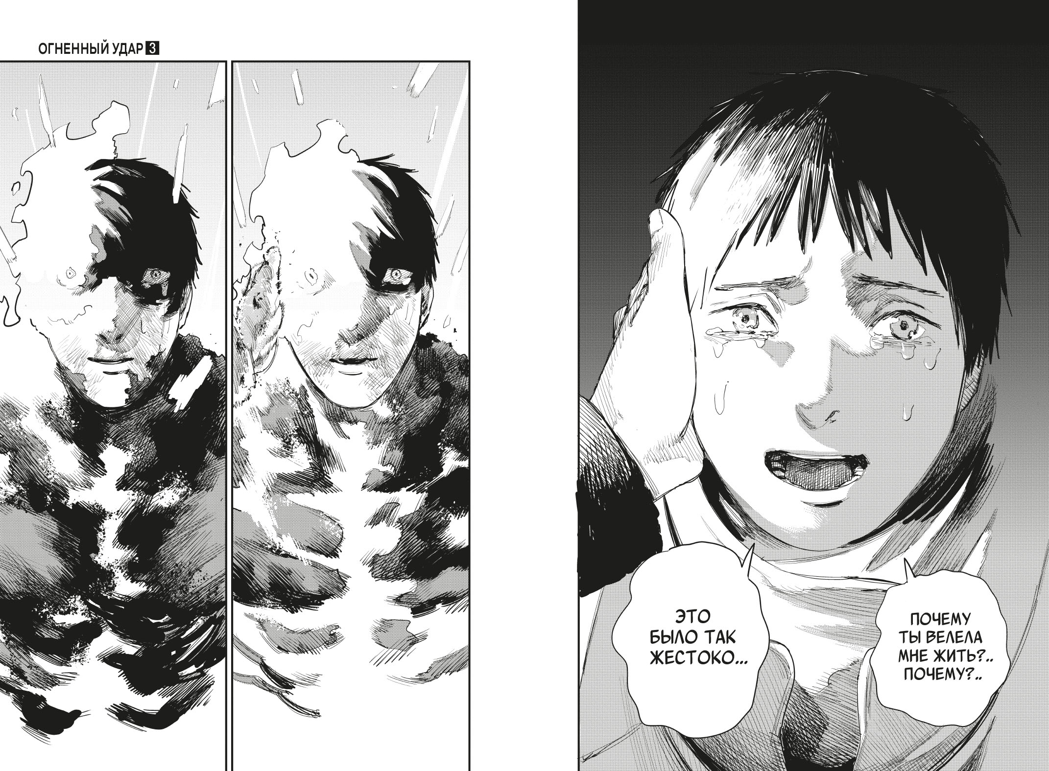 Оставить отзывОсвоив азы ведения боя, Агни вновь прибывает в Бехемдолг. На этот раз охваченный пламенем юноша собирается довести дело до конца и убить Дому. Однако огненный человек не в курсе, что его новая знакомая Тогата плетет интриги у него за спиной. Цель эксцентричной девушки-режиссера – снять фильм с Агни в главной роли, и, чтобы сделать свое кино по-настоящему увлекательным, Тогата вступает в сговор с Иудой, главой Бехемдолга. Ничего не подозревающего Агни уже поджидает целая армия вооруженных солдат, а также трое заключенных-смертников, наделенных мощными благословениями. Свет, камера, мотор?..