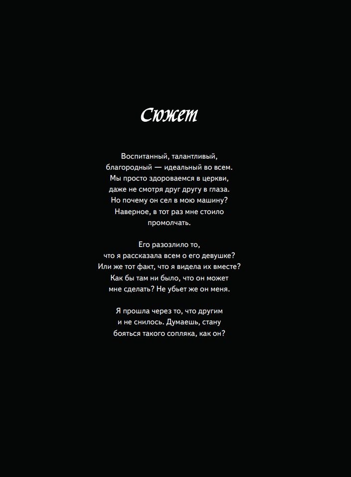 Начинается смертельная игра между тем, кто не привык получать отказы, и той, кто не умеет сдаваться. Игра, из-за которой прольются кровь и слезы, и кто-то обязательно погибнет.