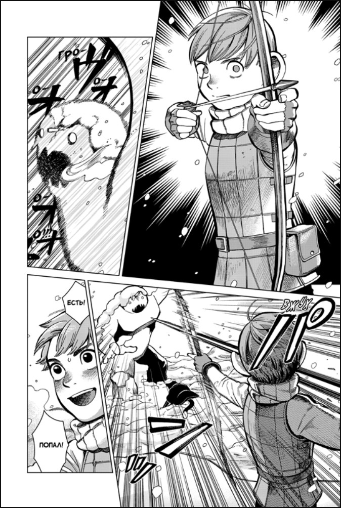 В книгу вошли 7-й и 8-й тома оригинальной манги, 14 глав и бонус «Беседы о монстрах» (7-8): «Ледяной голем», «Баранец», «Яйца», «Золотой край», «Грифон», «Фамильяры», «Похлебка из грифона», «Пельмени» (1-2), «Яйца с беконом», «На 1-м уровне» (1-3), «Двурог».