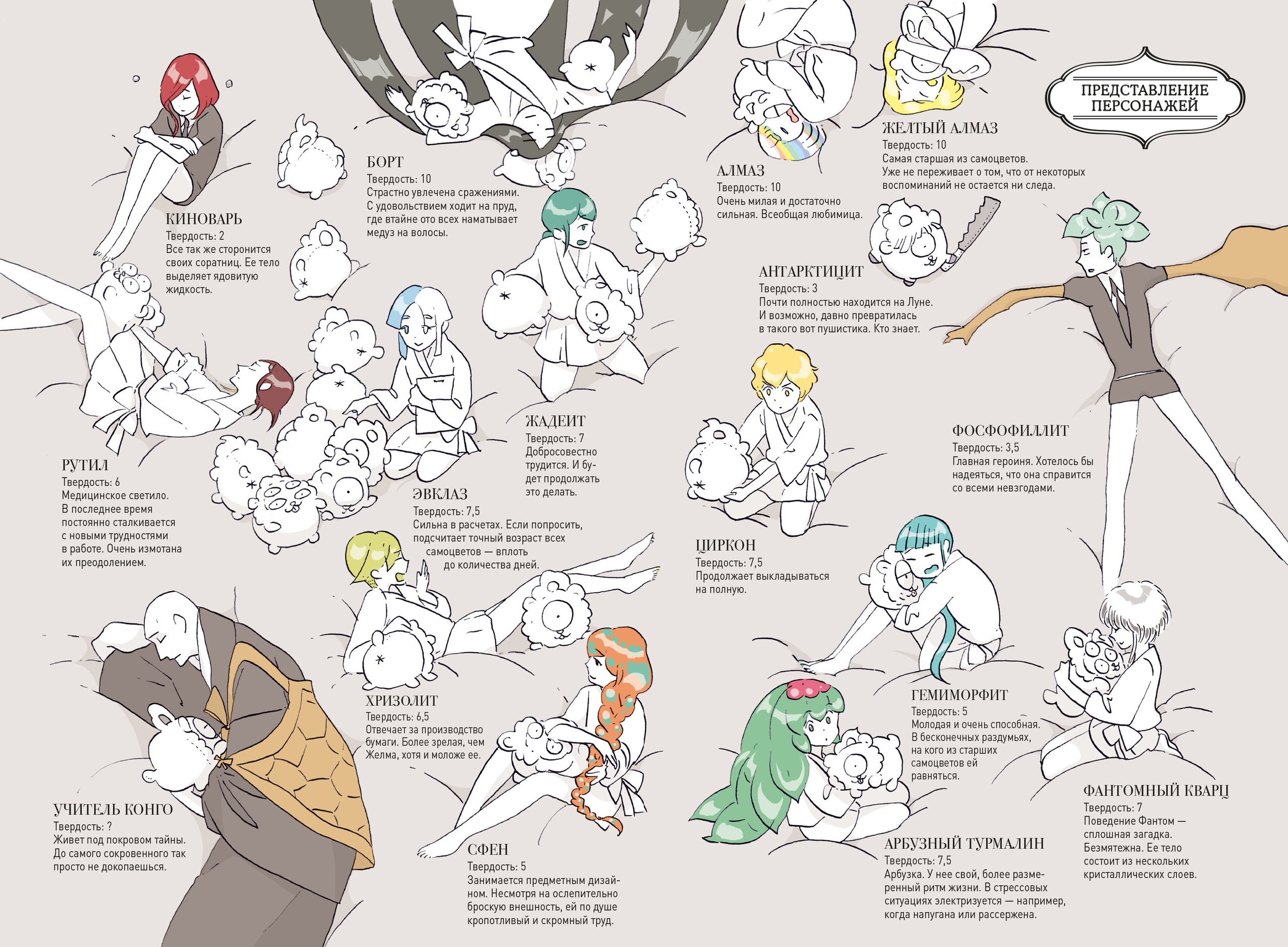 Оставить отзывФос продолжает познавать мир. Мир продолжает временами быть крайне жесток. В отличие от других самоцветов Фосфофиллит полагает, что с лунянами есть возможность найти общий язык. Только это опасно делать в одиночку. Вот учитель Конго ведёт себя временами довольно странно. Не может ли он быть связанным с лунянями?..