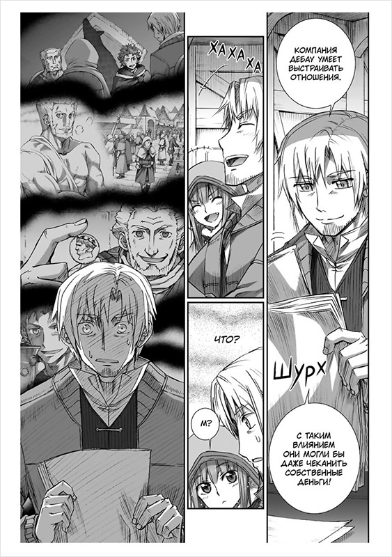 Лоуренс, который уже почти стал хозяином магазина своей мечты, оказывается втянут в политический конфликт компании Дебау. Игра идёт нешуточная, и, похоже, им с Холо придётся поделиться книгой, которую они так долго искали. Но правильную ли сторону они заняли?..