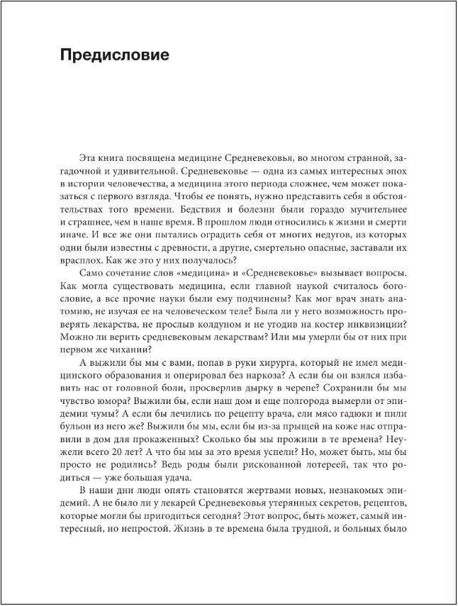 Возникает вопрос: не было ли у лекарей Средневековья утерянных рецептов, которые могли бы пригодиться сегодня? Отвечая на эти вопросы, книга дает наглядное представление об истории западноевропейской медицины. Откройте ее на любой странице – вы найдете любопытные исторические факты, а иногда и секреты средневековых целителей. Мы познакомимся с их рецептами на все случаи жизни – и как влюбить в себя, и как избавиться от того, кто вам надоедает. Книга рассчитана на широкий круг читателей: и на тех, кто интересуется или занимается медициной, и на тех, кто старается держаться от врачей подальше.
