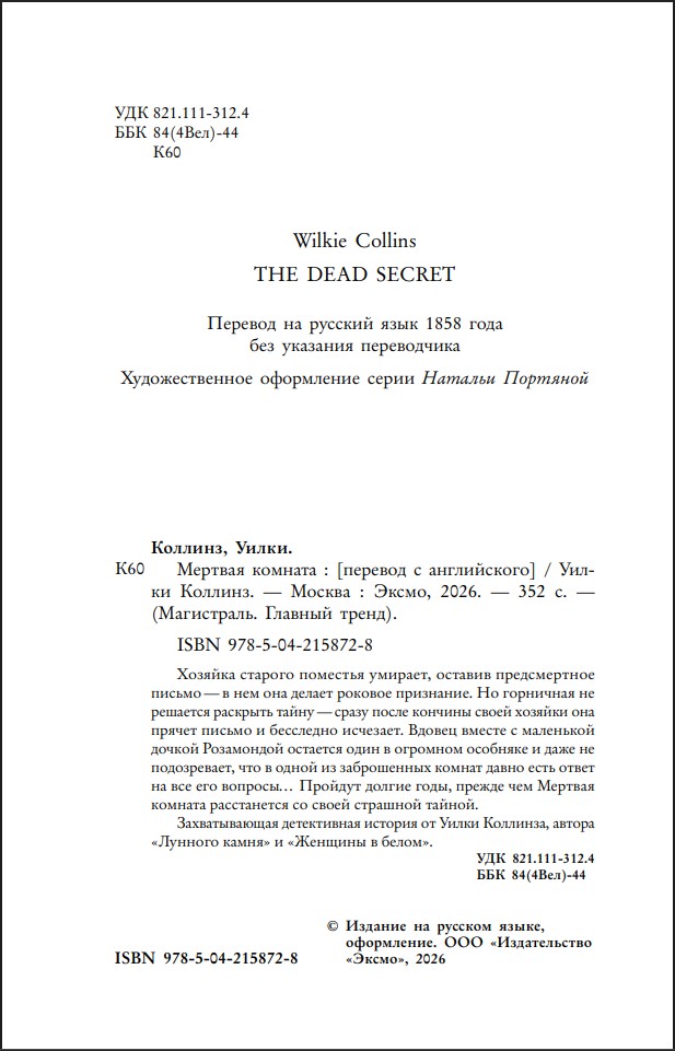 Пройдут долгие годы, прежде чем Мертвая комната расстанется со своей страшной тайной.
