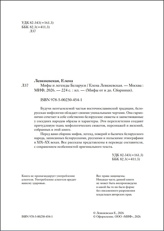 В этой книге рассказывается о белорусской мифологии в том виде, в котором она известна нам по фольклорным и этнографическим записям, начиная со второй половины XIX века и заканчивая фольклорными экспедициями нашего времени.
