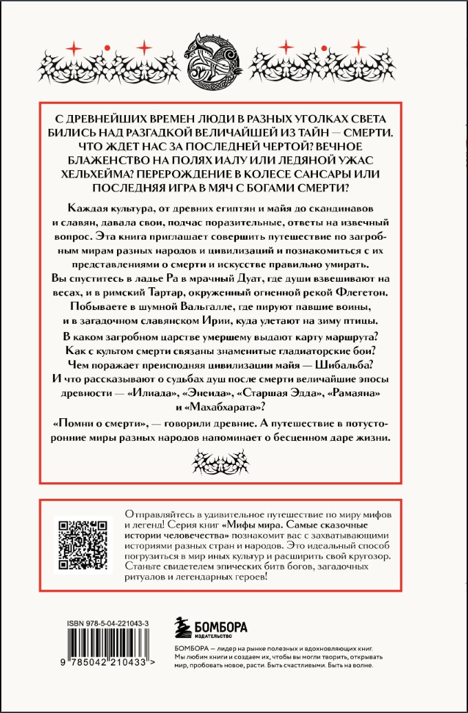 Эта яркая книга приглашает заглянуть в загробные миры разных народов: древних римлян и египтян, скандинавов, восточных славян, индийцев, майя – и познакомиться с их культурой смерти и искусством правильно умирать.