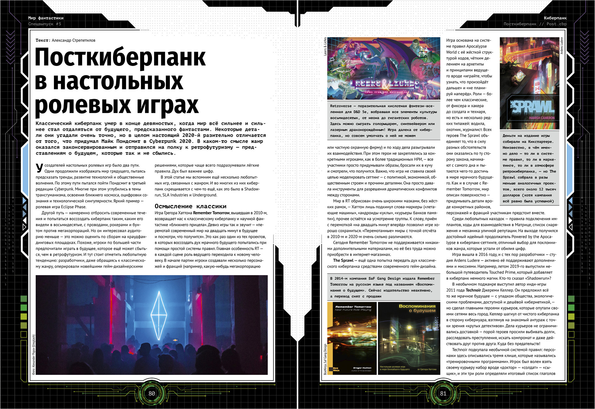 - Артефакты киберпанка – настольные игры, комиксы, фильмы, книги, аниме, видеоигры, сериалы