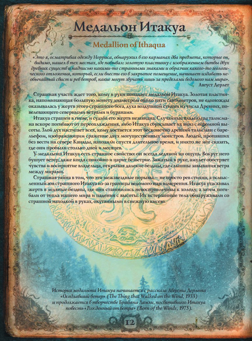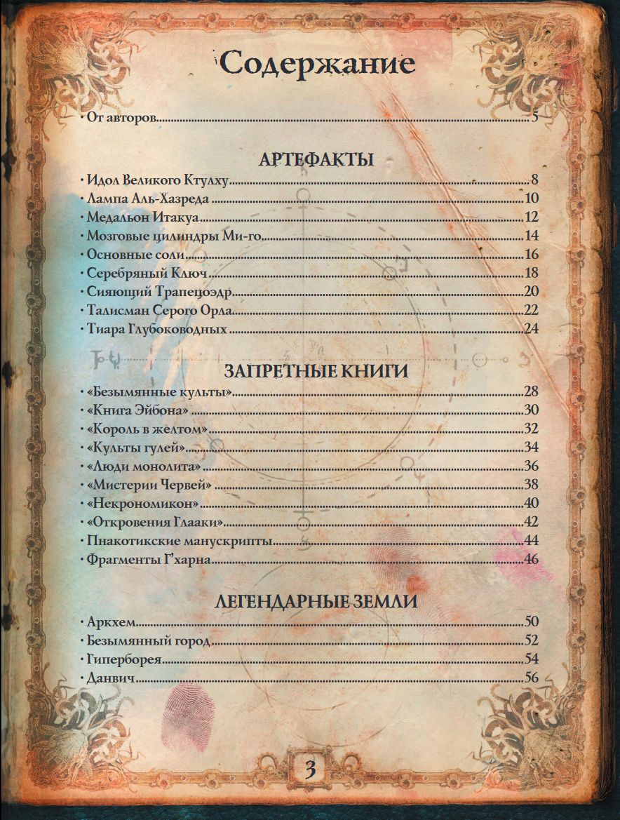 Подробно показаны Локации и Артефакты, иные миры и запретные труды, составляющие значимую часть «вселенной Лавкрафта» и Мифов Ктулху.