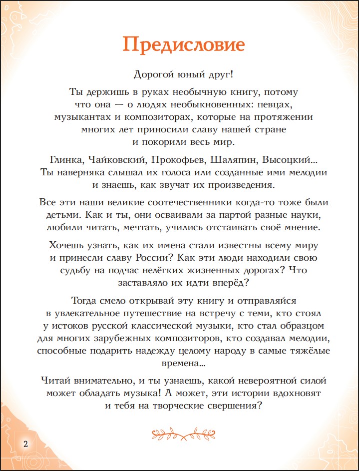 Эта книга патриотической серии «Великие люди великой страны» рассказывает о двадцати наших знаменитых соотечественниках – музыкантах, композиторах, музыковедах, певцах, чьи имена навсегда останутся в истории России. Кого называют «золотым голосом России»? При каких обстоятельствах была написана музыка к гимну нашей страны? Чьими стараниями были основаны первые русские консерватории?