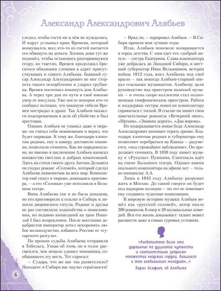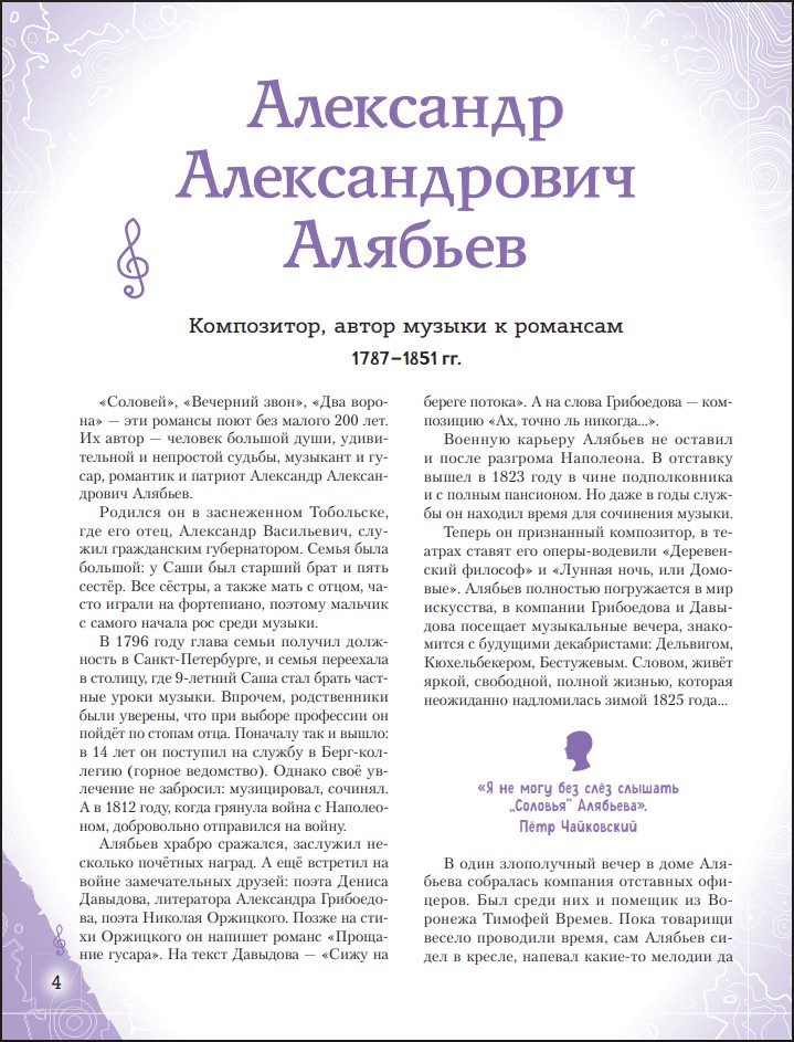 Издание предназначено для среднего школьного возраста, однако будет интересно и взрослым, а также станет неповторимым подарком по любому поводу для всех, кто любит Россию и гордится ею. Читайте всей семьёй и узнавайте всё самое интересное о великих людях нашей страны!