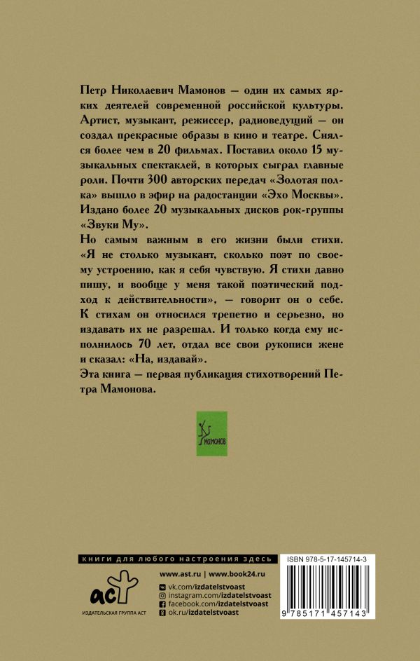 Эта книга – первая публикация стихотворений Петра Мамонова.