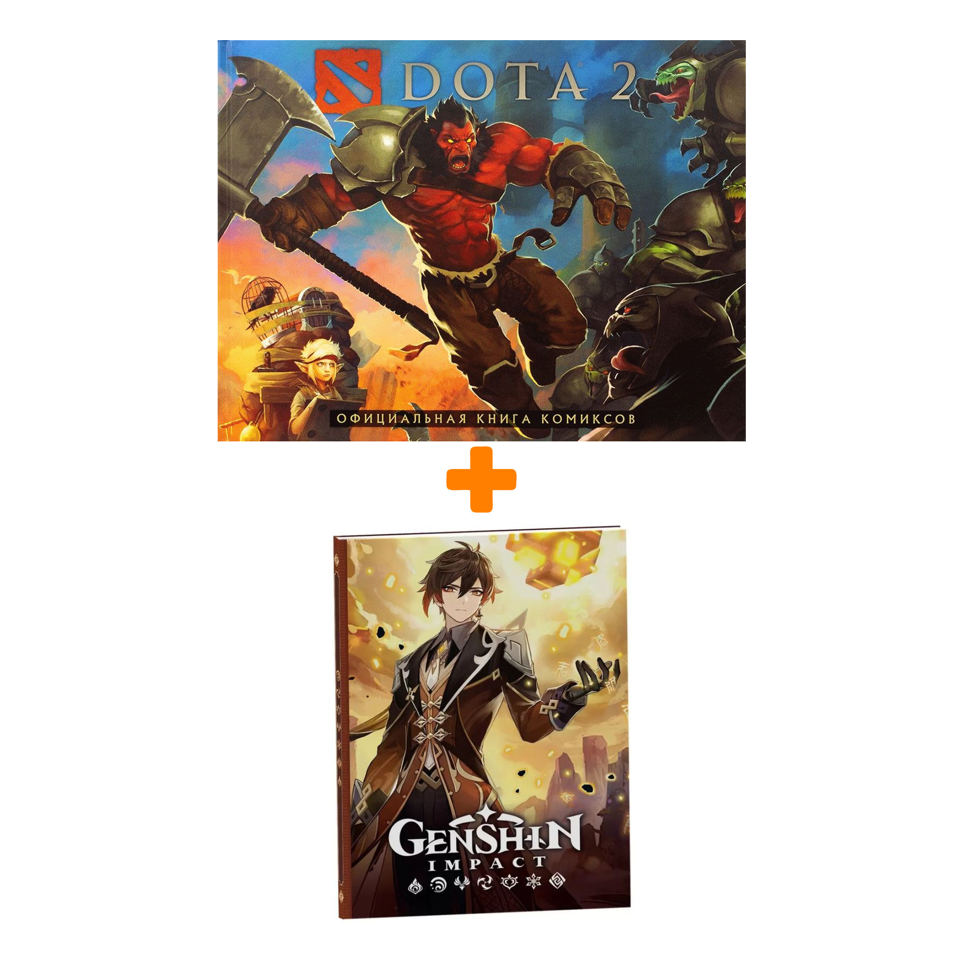 Набор Комикс Dota 2. Официальная книга комиксов + Блокнот Genshin Impact с наклейками коричневый