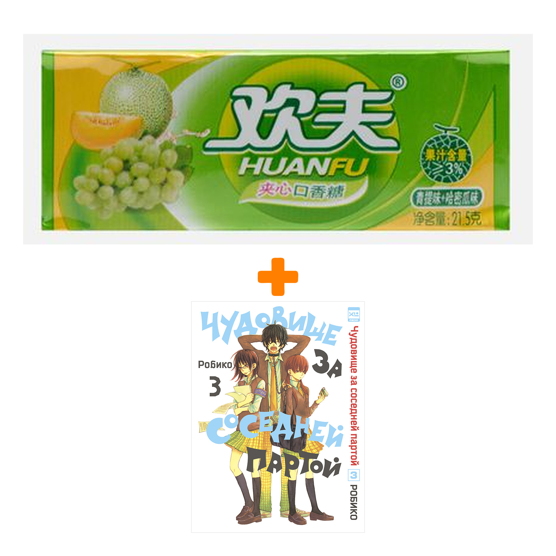 Набор Манга Чудовище за соседней партой Том 3 + Жевательная резинка Huanfu Grape & Melon Вкус винограда и дыни