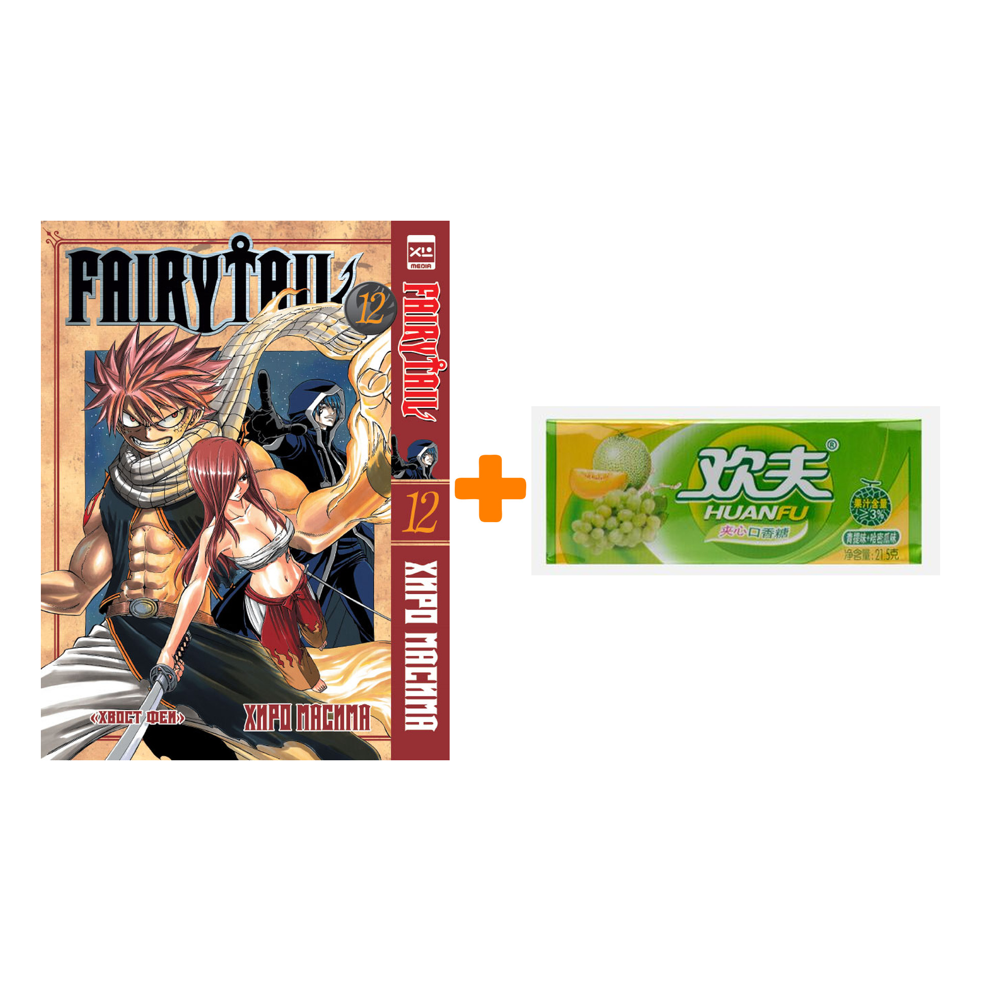 Набор Манга Хвост феи Том 12 + Жевательная резинка Huanfu Grape & Melon Вкус винограда и дыни