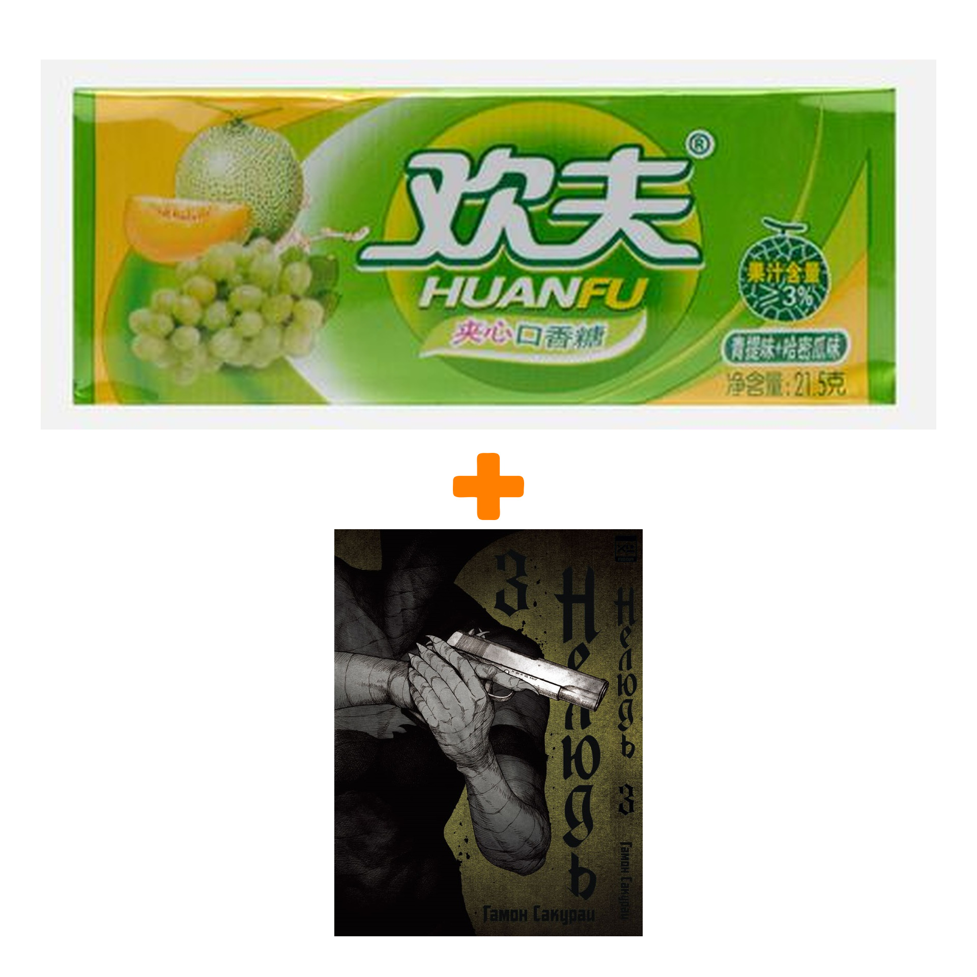 Набор Манга Нелюдь Том 3 + Жевательная резинка Huanfu Grape & Melon Вкус винограда и дыни
