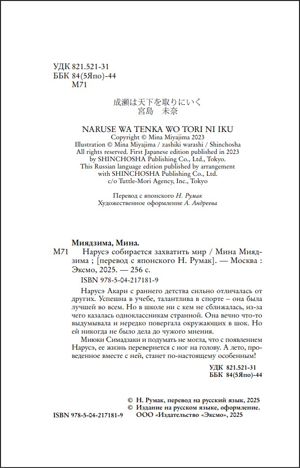 Эта книга стала настоящим литературным феноменом в Стране Восходящего Солнца. История непоседливой японской школьницы Нарусэ началась с небольшого рассказа и затем превратилась в полноценную книгу о приключениях самобытной девочки, которая не боится мнения окружающих. Необыкновенный успех книги обеспечил ей продолжение и адаптацию в виде манги.