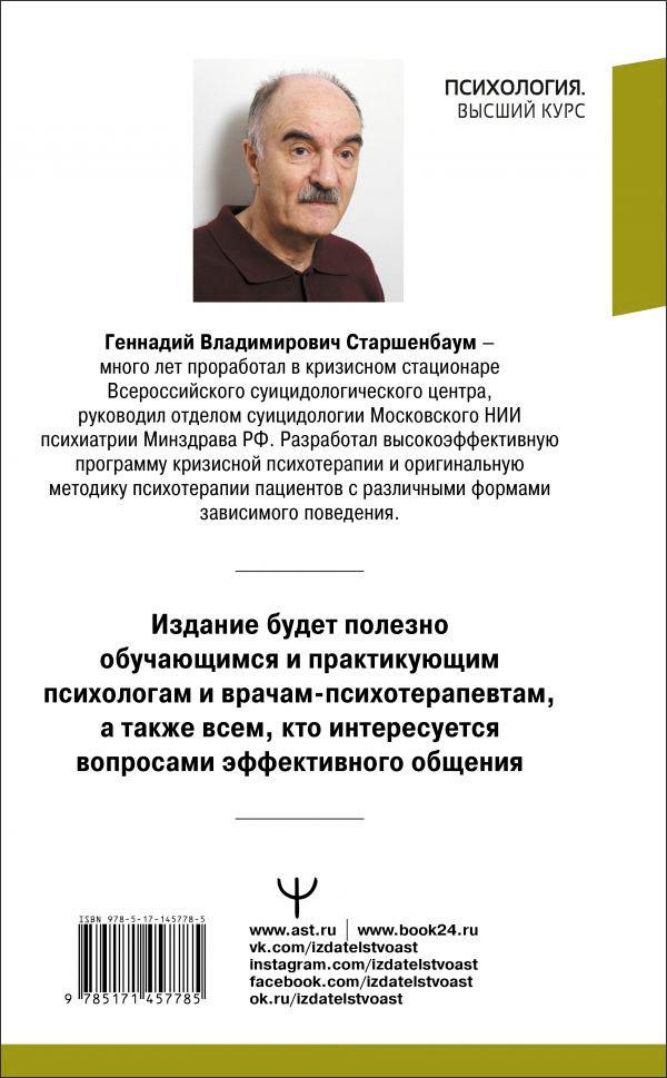 Эта книга – настоящая энциклопедия общения с клиентом. Автор книги, известный практикующий врач-психотерапевт Г. В. Старшенбаум, предлагает пятиступенчатую стратегию консультирования клиентов с использованием экзистенциально-гуманистического, когнитивно-поведенческого подходов, а также психодинамическую и гештальт-терапию.