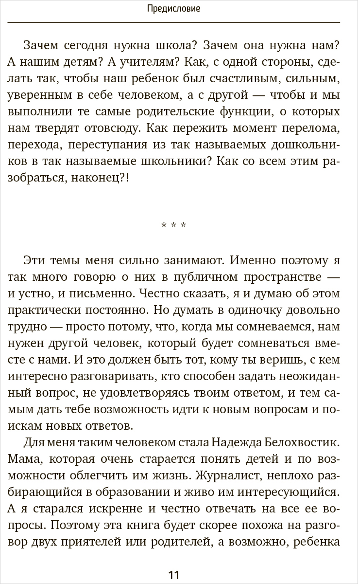 Оставить отзывНужно ли ребенку ходить в школу и зачем? Какой должна быть школа, чтобы дети в ней учились, а не мучились? Какие типичные ошибки совершают учителя и родители и есть ли способы их избежать? Что такое раннее развитие и нужно ли оно? Как получать удовольствие от воспитания и обучения ребенка?