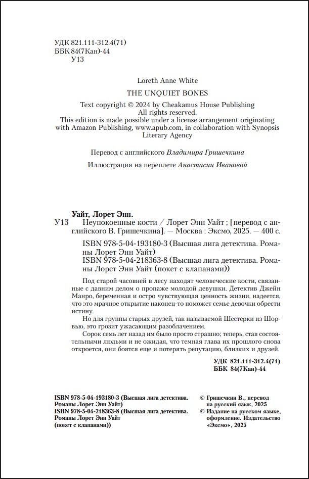 Под старой часовней в лесу находят человеческие кости, связанные с давним делом о пропаже молодой девушки. Детектив Джейн Манро, беременная и остро чувствующая ценность жизни, надеется, что это мрачное открытие наконец-то поможет семье девочки обрести истину.