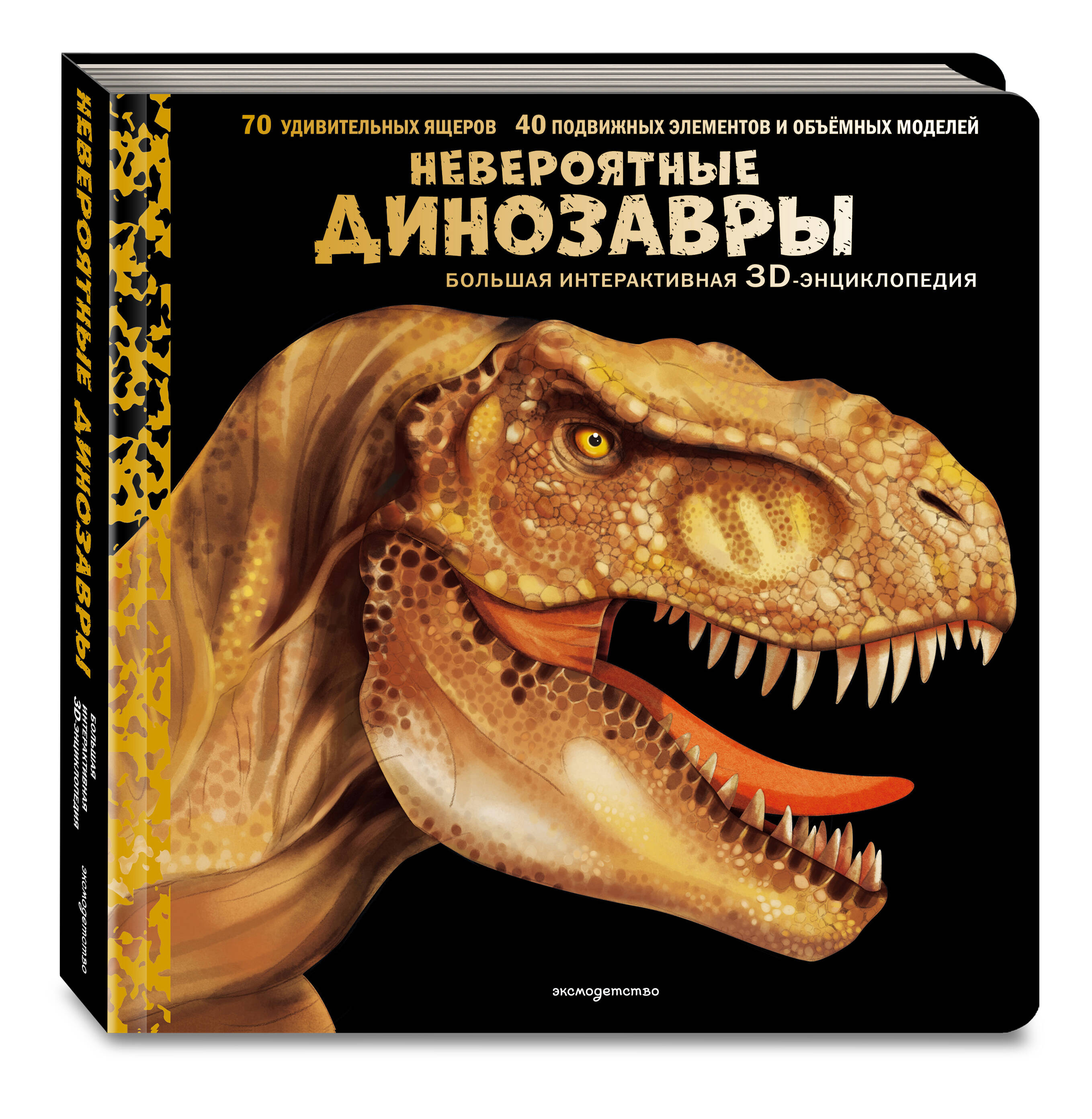 Большая интерактивная 3D-энциклопедия с подвижными элементами, pop-up панорамами, окошками, клапанами, задвижками. Только самые интересные факты о динозаврах в ярком подарочном издании с роскошной обложкой!