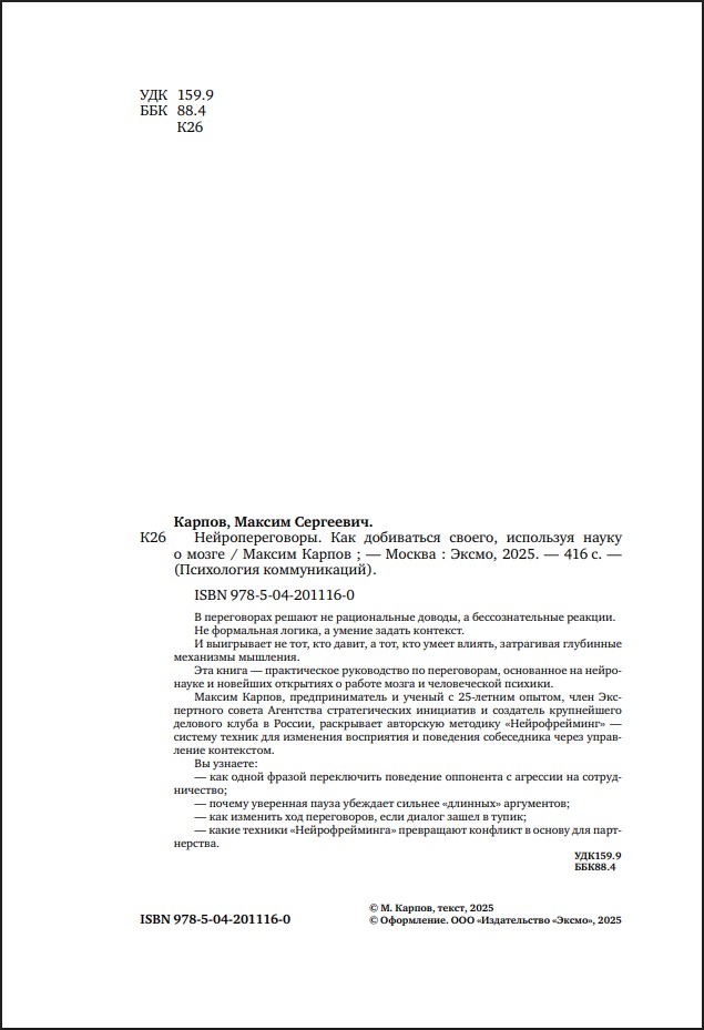 Эта книга – практическое руководство по переговорам, основанное на нейронауке и новейших открытиях о работе мозга и человеческой психики.